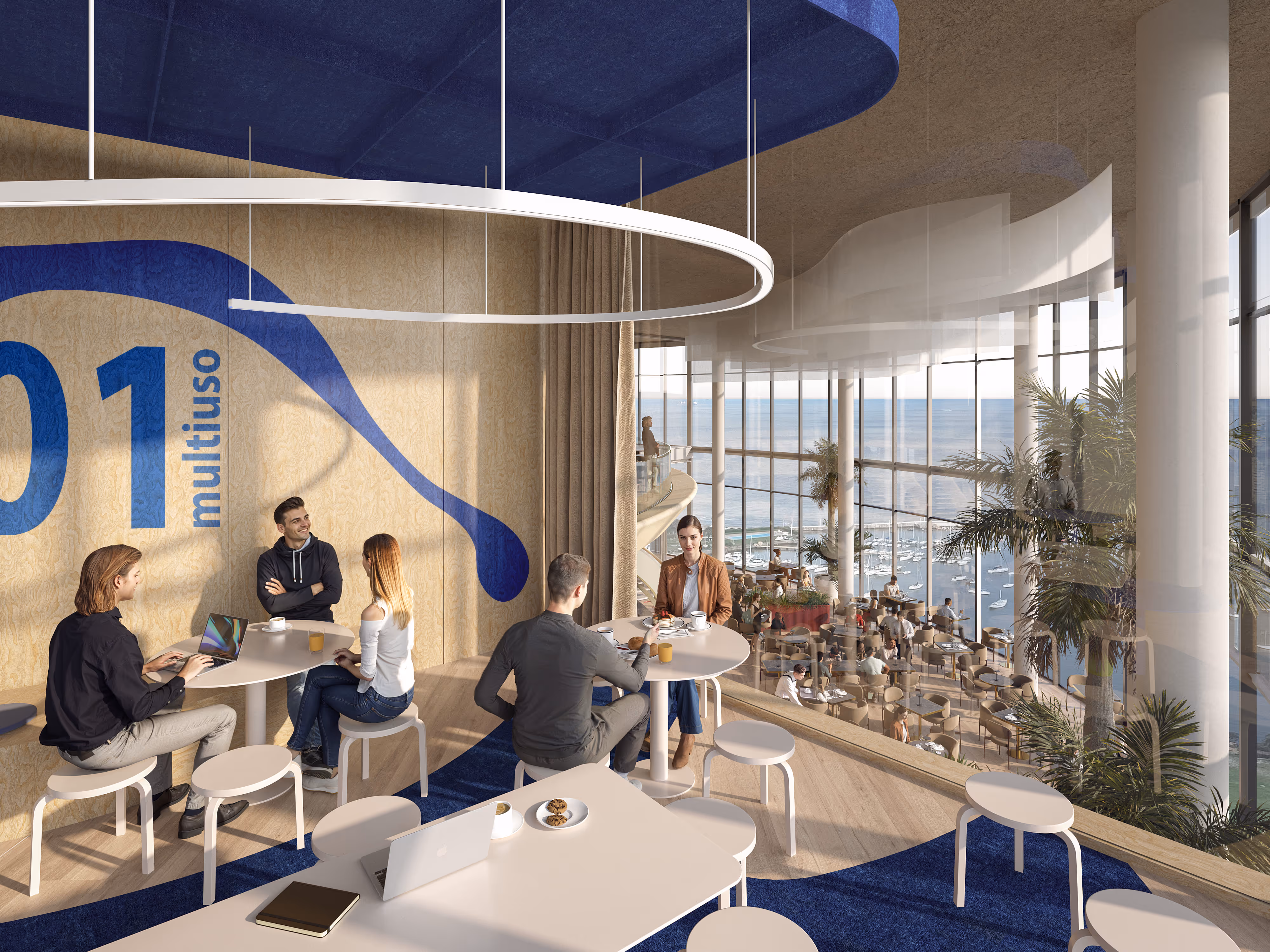 Gimnasio, cowork, salones gourmet y barbacoas con vista al mar.